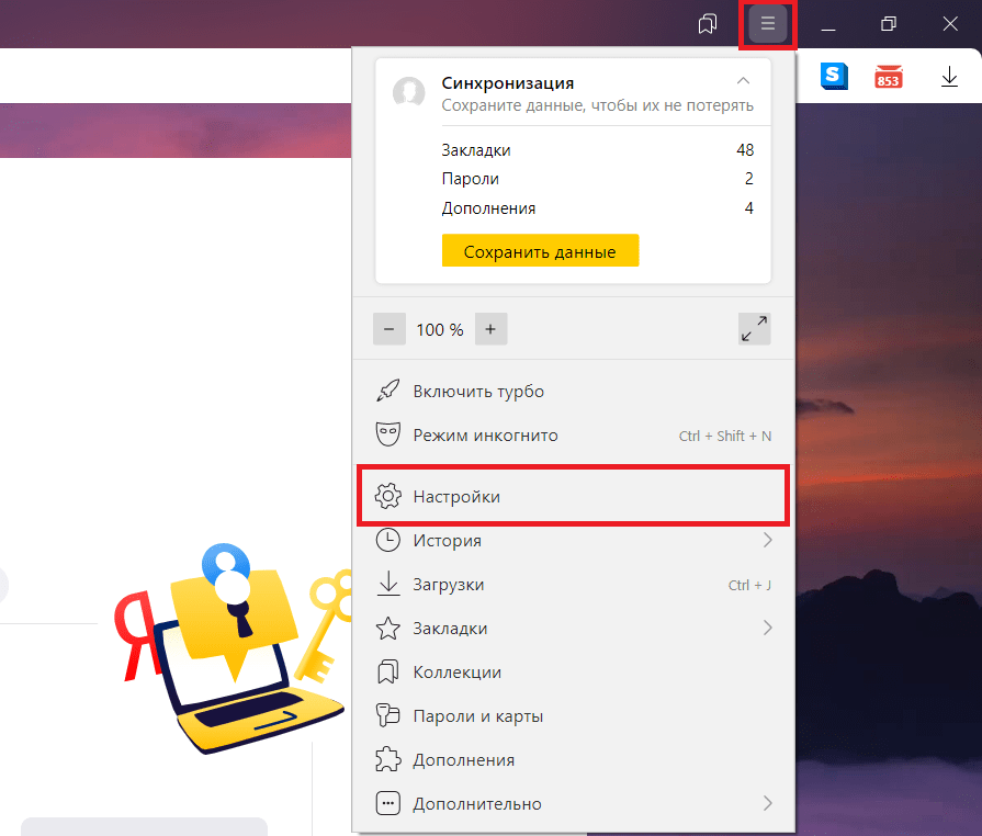 - Нажимаем на иконку с тремя горизонтальными линиями в правом верхнем углу окна браузера.