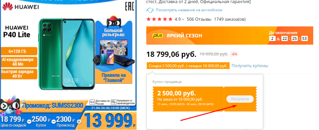 Тем не менее, в ритейле до сих пор остаются устройства китайской корпорации, которые регулярно предлагают с хорошими скидками. Один из самых интересных «старожилов» бренда – это субфлагманский Huawei P40 Lite, который сейчас доступен на Tmall за 13 990 рублей вместо полного прайса 17 990 рублей.