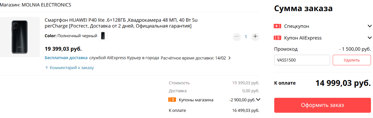 В целом, Huawei P40 Lite — добротный середняк с очень неплохими характеристиками за 15 тысяч. Вот ссылка на акцию на Tmall – чтобы получить скидку, берите купон и указывайте промокод VASS1500 при оформлении заказа. А если Google-сервисы принципиальны, залетайте за бюджетниками Xiaomi – до 18 февраля их будут продавать по акции с жирнейшими скидками. В этой статье мы собрали 5 смартов с распродажи, которые стоит брать.