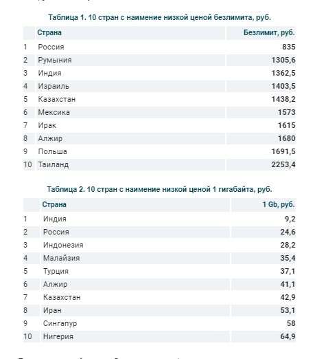 Аналитика получилась довольно обширной, она затронула 50 стран мира и 136 местных мобильных операторов. Эксперты оценивали как тарифы с ограниченным пакетом трафика, так и полностью безлимитные. Получилось, что средняя цена за 1 ГБ трафика в мире остановилась у отметки 189.8 рублей, тогда как в России гигабайт мобильного интернета обходится абонентам в 24.6 рублей.