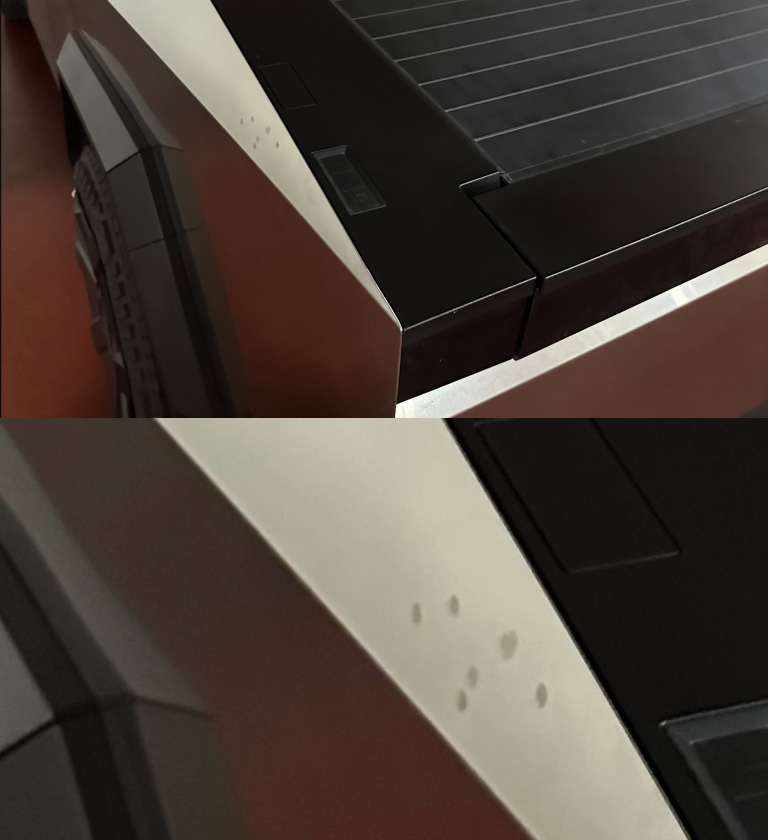 Матовый металл, из которого состоит кузов Cybertruck, оказался очень марким. Он собирает на себя пыль и грязь, на нем остаются даже отпечатки ладоней. Собственно, по фотографиям отлично видно, как будет выглядеть авто после поездки по пыльной дороге. Так что хозяевам придется прикладывать немало усилий, чтобы поддерживать Cybertruck в презентабельном виде.