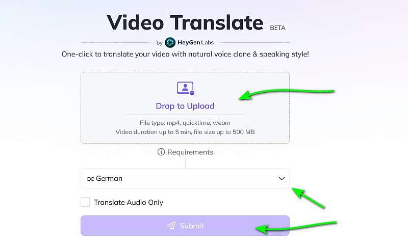 Опробовать HeyGen в тестовом режиме можно на этом сайте. Бесплатно перевести разрешают одно видео в день длиной от 30 до 59 секунд. Меньше установить нельзя, а для чего-то длиннее придется раскошелиться на платную подписку (от $50 до $150 в месяц). Регистрация обязательна, но вы можете авторизоваться и через Google-аккаунт.