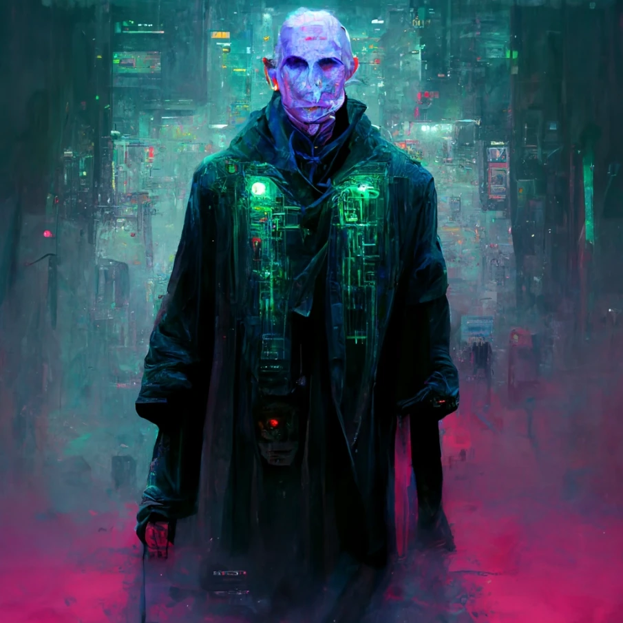 На представленных картинках часть главных героев франшизы: Гарри Поттер, Рон Уизли, Гермиона Грейнджер, Альбус Дамблдор, Северус Снейп, Полумна Лавгуд, Хагрид, Волан-де-Морт, а также сова Букля и несколько пейзажей с видом на киберпанковый Хогвартс. Посмотрите, получилось необычно и интересно.