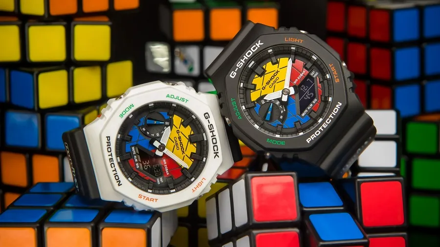 Японский производитель часов Casio представил свою новейшую коллаборацию – ей стала лимитированная серия Rubik’s x G-Shock GAE-2100RC-1AER. В продажу она поступит 9 февраля, а вдохновлена, как явственно следует из названия, легендарным кубиком Рубика. К тому же это первый коллаб, в котором используется восьмиугольная форма корпуса, свойственная моделям линейки GA-2100 – неубиваемым рабочим лошадкам.