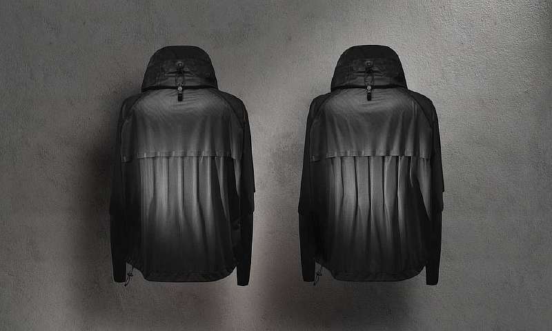 Это стало возможным благодаря использованию специальной пленки, которая реагирует на изменения влажности и работает как мышца. Материал нанесен на отверстия в области груди и спины, где бегуны выделяют больше всего тепла и пота. Пленка расширяется по мере скопления влаги на коже, тем самым открывая вентиляционные отверстия. При движении поток воздуха проходит через куртку, обеспечивая ощущение свежести и комфорта. А когда тело остывает и пот высыхает, отверстия снова закрываются.