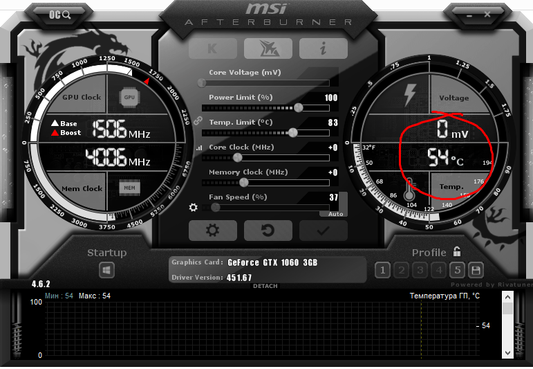 Как только вы запустите MSI Afterburner, перед вами сразу отобразится приборная панель, где и будут указаны искомые цифры.