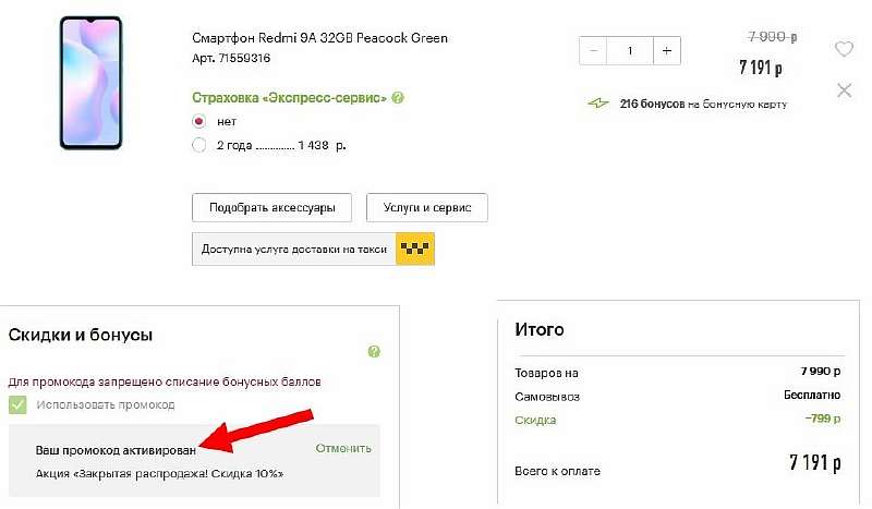 Обнаружили, что в Эльдорадо действует тайная скидка на новенький Redmi 9A. В интернет-магазине зеленых бюджетник отдают за 7191 рубль по промокоду СЕКРЕТ10, хотя у других официальных ритейлеров он стоит 8 тысяч за версию 2/32 ГБ.