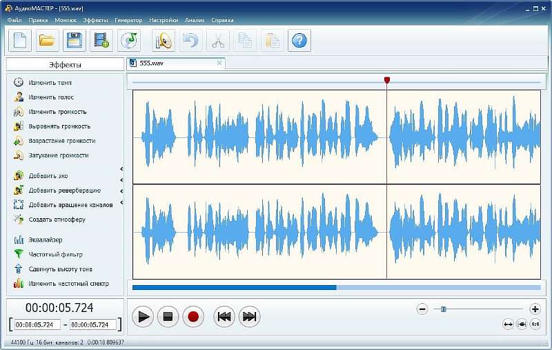 Это программа для домашнего использования от отечественного разработчика. В ней можно записать аудио с микрофона, обрезать его, воспользоваться эквалайзером для улучшения качества звука, наложить эффекты и многое другое. Софт имеет простой понятный интерфейс, который не вызовет затруднений даже у начинающих пользователей.