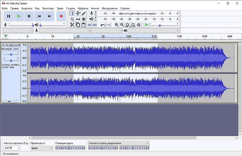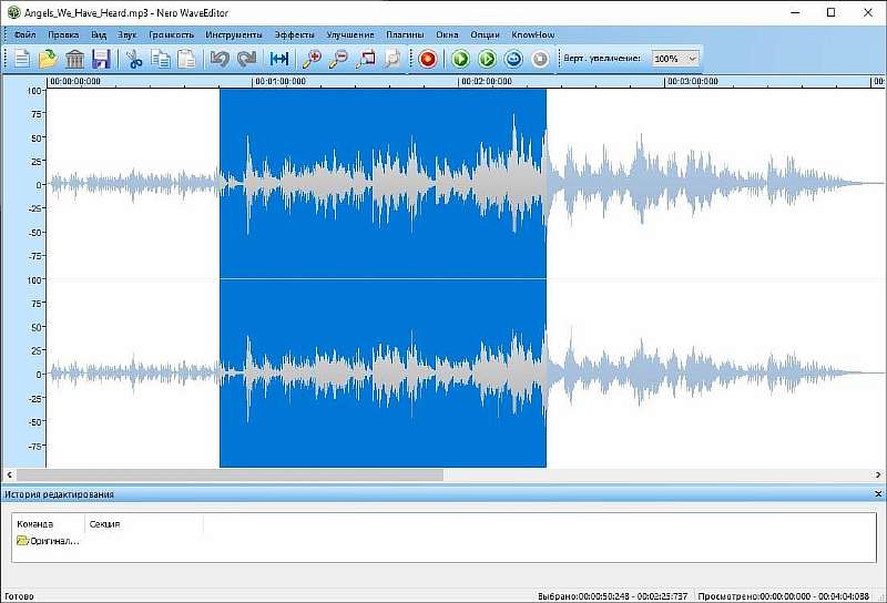 - Откройте аудиозапись. Это может быть композиция с компьютера, извлечённый из видео звук, треки с диска или ваша новая запись с микрофона.