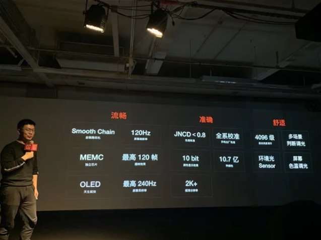 Новые смартфоны получат специальный чип MEMC для оптимизации видео с низким фреймрейтом и функцию автоматической подстройки баланса белого, аналог TrueTone от Apple. Кроме того, разработчики заявили, что экран OnePlus 8 имеет самый высокий в индустрии стандарт цветопередачи JNCD <0.8, превосходящий JNCD <0.9 в iPhone 11 Pro Max и средний показатель на рынке JNCD <2.