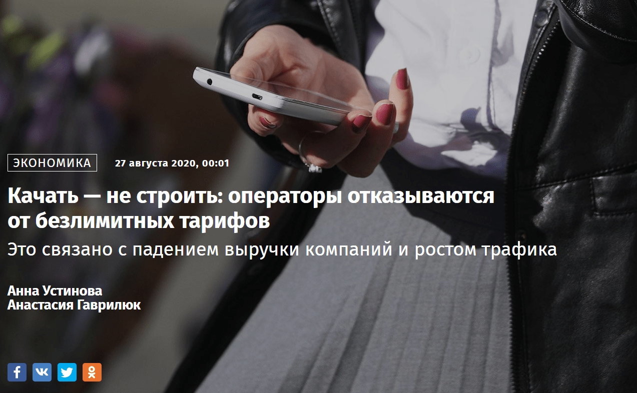 Отправной точкой для статей во всех изданиях и, по совместительству, спусковым крючком для массового помешательства стала одна единственная статья на портале «Известий». Заголовок у нее действительно оказался громким: «Качать — не строить: операторы отказываются от безлимитных тарифов». Будем честны, от российских компаний можно ждать чего угодно, поэтому к материалу мы отнеслись со всей серьезностью.