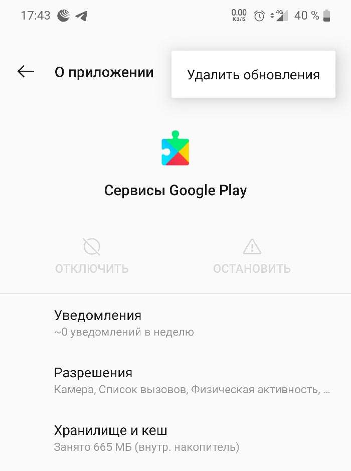 Удаление обновлений сервисов Google.