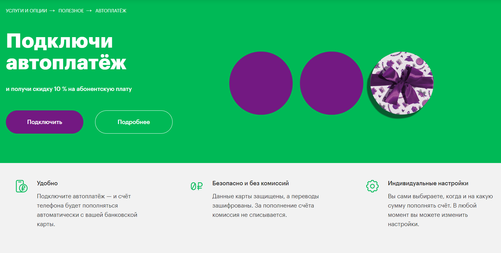 Автоплатеж — очень полезная услуга, с которой вы вряд ли останетесь без связи и интернета просто потому, что забыли вовремя внести абонентскую плату. Ну а 10% скидка на целых полгода — это отличное предложение, которым однозначно нужно пользоваться. Конечно, для многих абонентов услуга автоплатежа остается чем-то сомнительным, им стоит подумать, что важнее — собственные привычки или более низкие цены на связь.