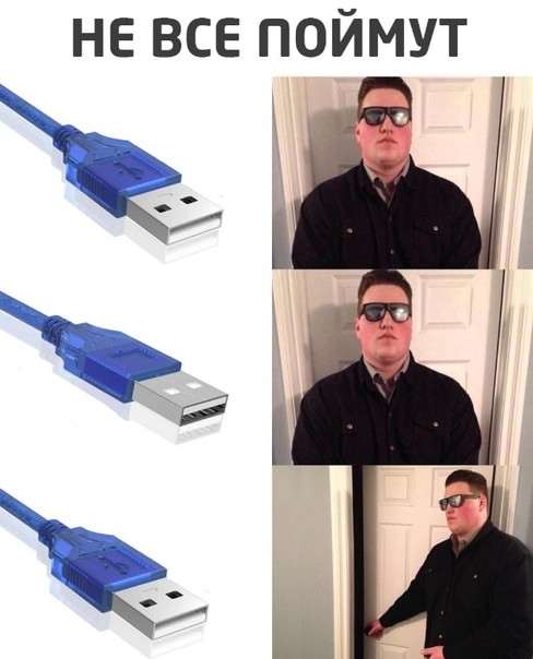 Отсюда и причина парадокса USB. Человек изначально не знает, в каком положении ему вставлять ту же флешку. Он пробует в первый раз, не видя разъема. Даже если вставил правильно, то часто не до конца, потому что сомневается. Пробует по-другому — не работает по очевидной причине. И наконец возвращается к изначальному положению, наконец воткнув нормально. Соединение установлено.