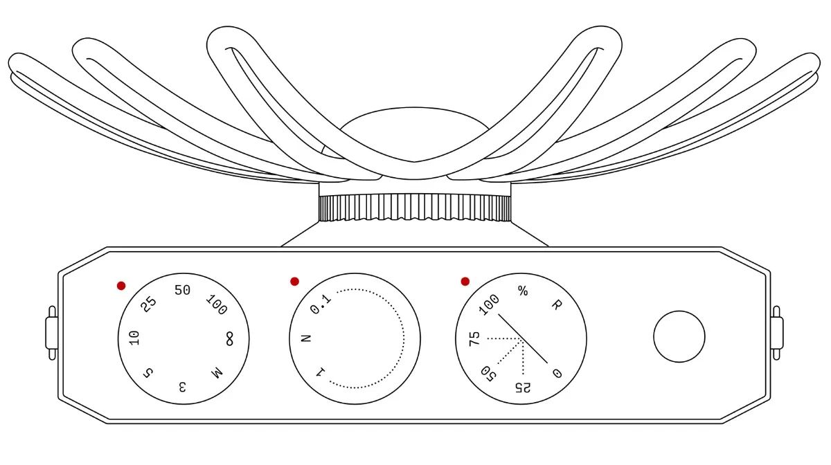 На месте объектива в камере расположена антенна, дизайн которой напоминает усики крота. Помимо сенсорного экрана, управление Paragraphica осуществляется с помощью трех поворотных дисков.