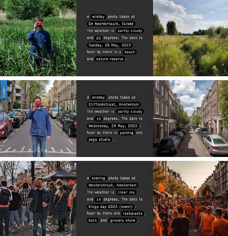 Вот так соотносится локация, текстовое описание и сгенерированное Paragraphica изображение: