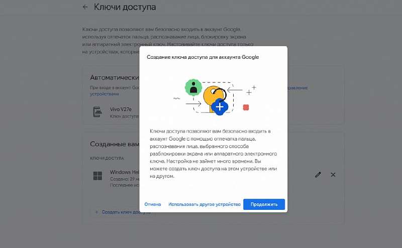 Пока что новая фича доступна ограниченному числу пользователей, но в скором времени ее развернут для всех. Чтобы попробовать уже сейчас, нужно перейти по этой ссылке, войти в аккаунт Google, нажать «Использовать ключи доступа» и следовать дальнейшим инструкциям.