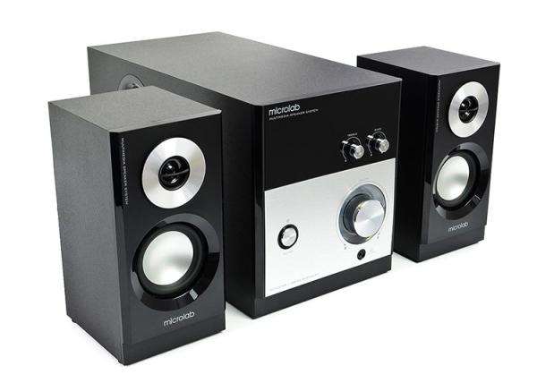 Microlab M-880 — единственная модель формата 2.1, которая попала в топ колонок для компьютера. Если для прослушивания музыки в этом бюджете можно найти классическую стереопару получше, то для фильмов и игр M-880 будут оптимальным вариантом: они недорогие, маленькие и за счет сабвуфера выдают очень достойный басс, добавляющий звуку объема.