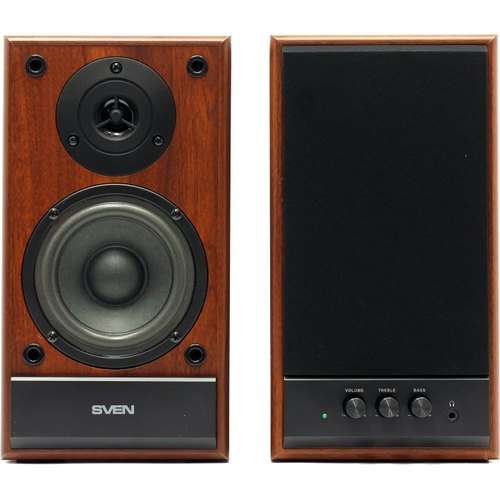 Одна из лучших моделей в ценовом диапазоне до 50$ по соотношению цена/звук. Колонки от Sven имеют классический внешний вид, особенно достойно выглядит вариант сделанный под орех. Звук громкий – производителем заявлено 40 Вт мощности, но реальный показатель, конечно же, меньше. Эргономика модели на высоте – все регуляторы удобно расположены на фронтальной панели, тянуться никуда не нужно.