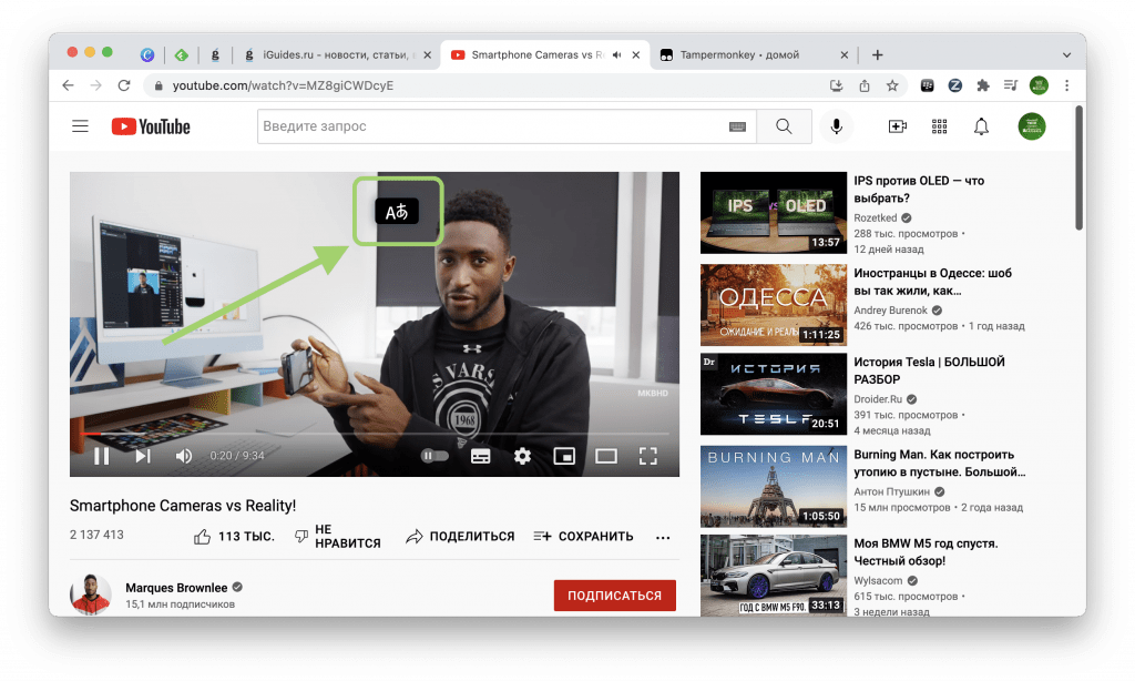 Чтобы начать пользоваться закадровым переводом, нужно установить в браузер расширение Violentmonkey или Tampermonkey (они есть для Google Chrome, Microsoft Edge, Apple Safari, Opera, Firefox, и других популярных программ), а затем перейти по этой ссылке, где браузер сам предложит скачать и активировать скрипт voice-over-translation. Включается перевод нажатием кнопки с иероглифом, которая автоматически всплывает при начале воспроизведения ролика.