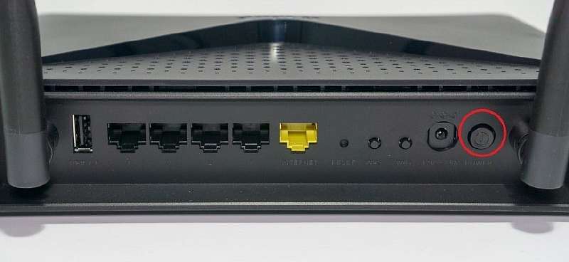 - Отключить роутер через кнопку Power на корпусе, также подождать немного, а затем включить обратно.