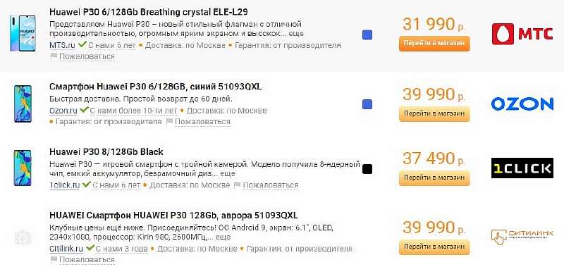 Красные предлагают P30 со скидкой 8 тысяч, за 31 990 рублей – это самая низкая цена на смартфон не только в официальной рознице, но и среди серых магазинов в России в принципе.