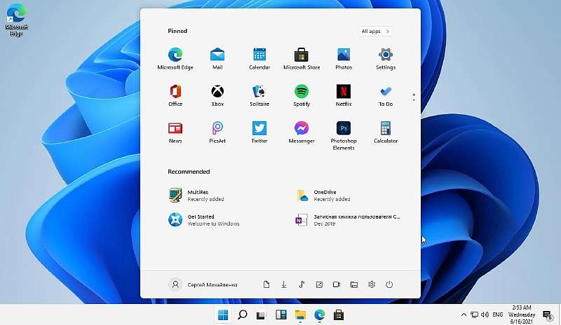 В частности, значки приложений находятся в центре панели задач. Меню «Пуск» значительно упростили, теперь в нём нет живых плиток – только закрепленные приложения и кнопки для быстрого выключения/перезагрузки ПК.