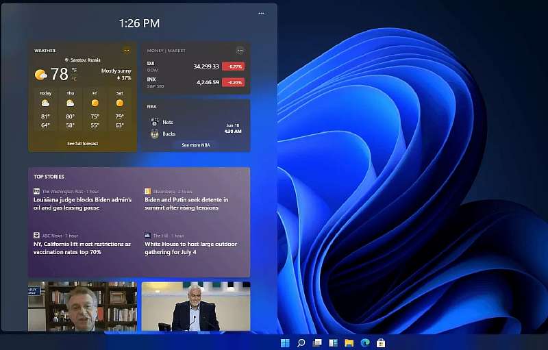 Также появилась специальная вкладка для виджетов, которую можно вызвать прямо с панели задач.