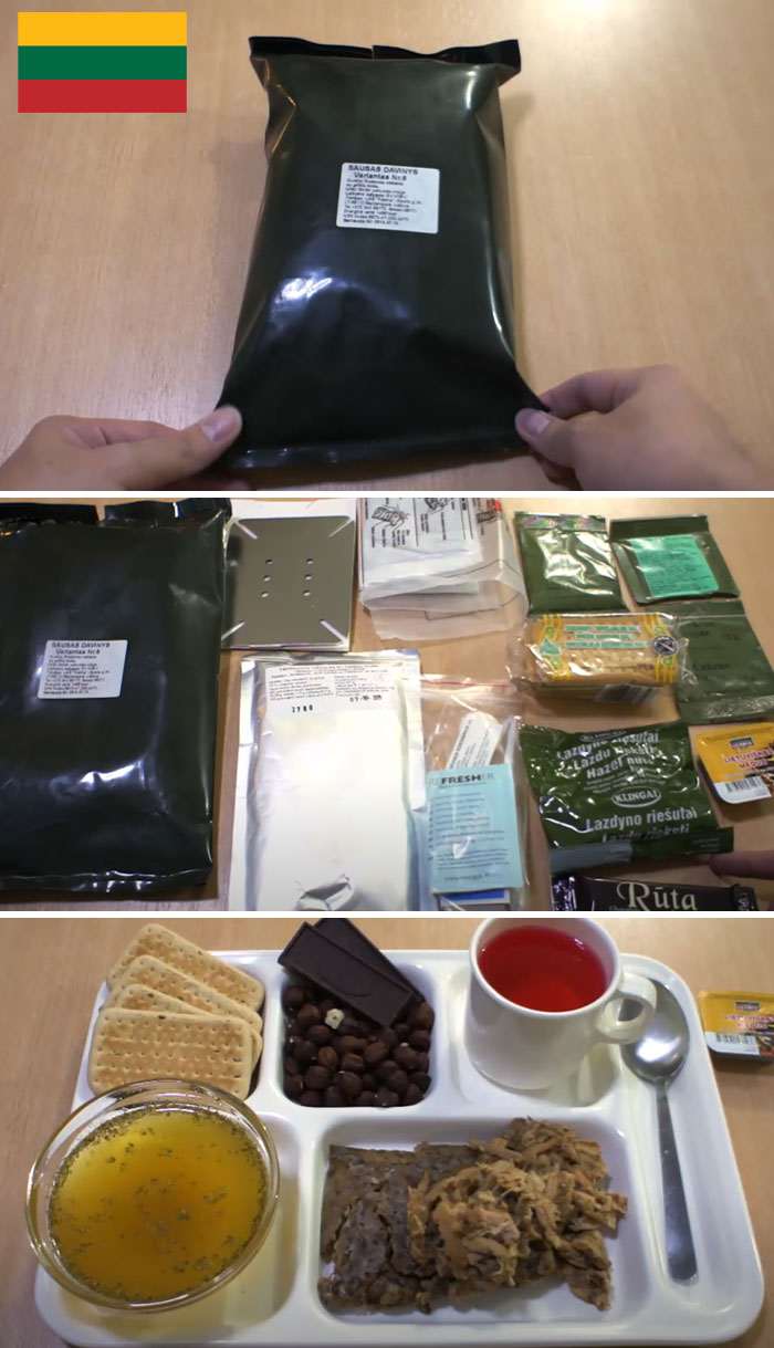 Солдат должен быть сытым — это незыблемое правило любых вооруженных сил. Чтобы обеспечить питание в полевых условиях, армии разных стран берут на вооружение сухпайки — они компактны, аккуратно упакованы, а продукты в них не требуют готовки и обеспечивают организм всем необходимым. Несмотря на общее назначение, рацион военных разных государств довольно сильно отличается. Посмотрите, какие сухпайки получают военные разных стран. 14 фото-примеров.