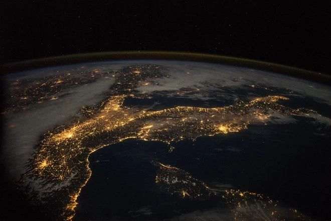 Фантастический вид нашей планеты ночью запечатлен экипажем 43 экспедиции Международной космической станции в 2015 году.