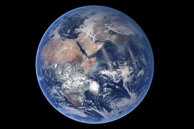 Снимок нашей планеты получен в 2014 году. Он создавался из сотен фотографий, сделанных со спутника Suomi, которые объединили в одно изображение с максимально возможной детализацией.