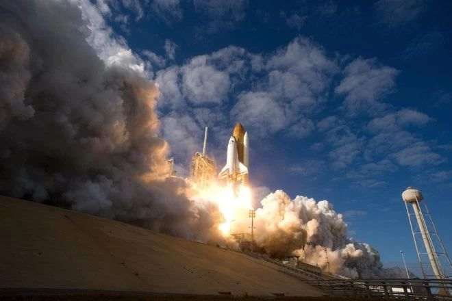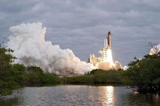 Невероятный вид космического челнока «Атлантис», запускаемого из космического центра Кеннеди во Флориде в 2009 году. Атлантис был одним из крупнейших грузоперевозчиков, который использовался для пополнения запасов Международной космической станции.
