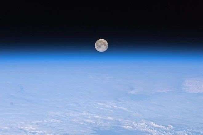 В 2011 году экипаж Международной космической станции сфотографировал полнолуние на фоне атмосферы Земли и таинственной черноты открытого космоса.