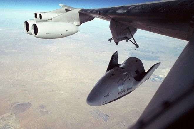 Корабль-носитель в действии показывает снимок запуска X-38 – модуля, который разрабатывался для возможности аварийного возвращения экипажа Международной космической станции на землю.