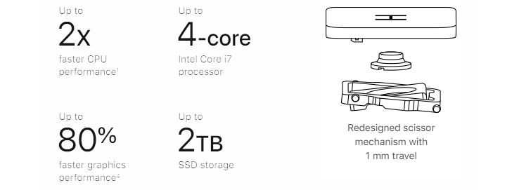 В ноутбуке используется клавиатура Magic Keyboard, дебютировавшая в MacBook Pro 16”. Это клавиатура ножничного типа, которая заменила провальную клавиатуру-бабочку.