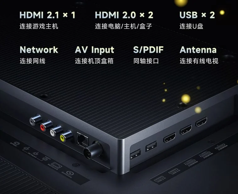 TV ES Pro 86” имеет современный дизайн с тонкой рамой из алюминия, а для подключения периферии предусмотрен целый ряд интерфейсов: один порт HDMI 2.1, пара HDMI 2.0, пара классических USB, тюльпаны и разъём для антенны. За звук отвечает система из 10 динамиков общей мощностью 30 Вт.