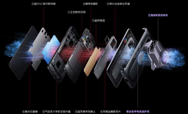 Чтобы гаджеты не грелись, их оснастили продвинутой системой охлаждения ICE 8.0. Общая площадь охлаждающего материала составляет 41 279 мм2. Вдобавок есть паровая камера площадью 4 124 мм2 и полноценный кулер, лопасти которого могут вращаться со скоростью до 20 000 оборотов в минуту. Уровень шума такой системы составляет 28 дБ. Производитель заявляет, что благодаря вертушке температура процессора снижается на 16 градусов относительно конкурентов с Snapdragon 8 Gen 1.