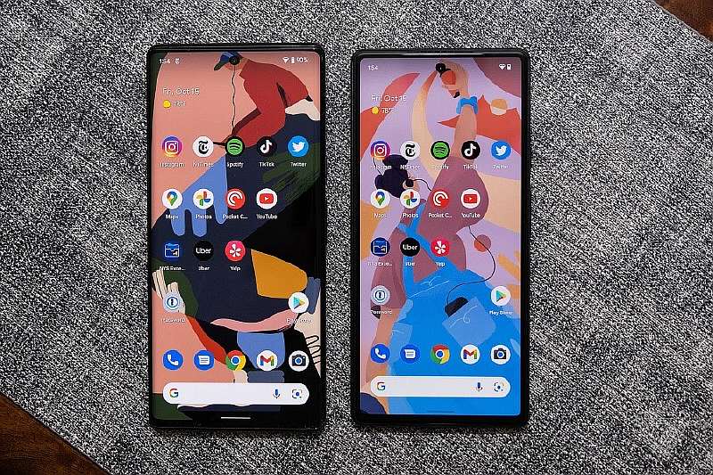 Предыдущие устройства линейки были компактными, но в шестом поколении от былой миниатюрности не осталось и следа. Размеры корпуса Pixel 6 составляют 158.6х74.8х8.9 мм, а у Pro-версии и вовсе 163.9х75.9х8.9 мм. Все из-за того, что у новинок подросли экраны: базовая модель получила 6.4-дюймовый дисплей, выполненный по технологии AMOLED с FHD разрешением и адаптивной частотой обновления в диапазоне 10-90 Гц, а топовую оснастили изогнутой 6.7-дюймовой QHD+ панелью с разверткой до 120 Гц. Причем рамки у обычного пикселя заметно толще, чем у Pro.