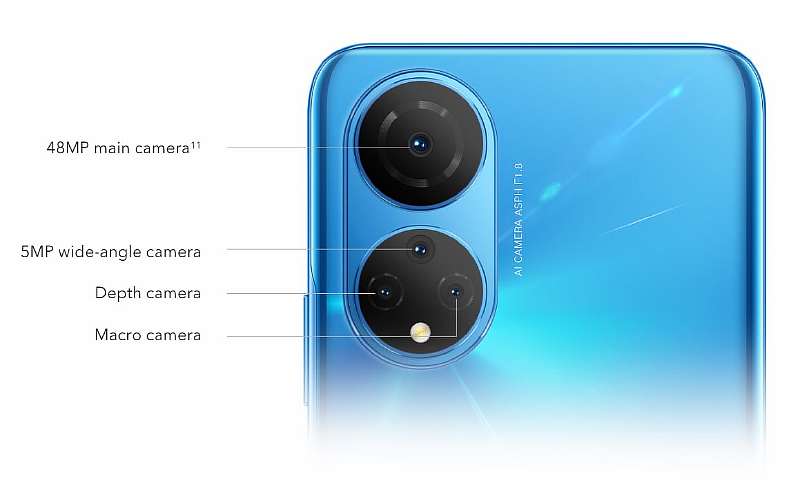 Если спереди Honor X7 выглядит достаточно незатейливо, поскольку 6.74-дюймовый дисплей с HD+ разрешением и частотой обновления 90 Гц имеет устаревший каплевидный вырез, то спинка сделана под стать флагманским аппаратам бренда. На ней размещен блок основной камеры с двумя крупными кольцами под объективы.