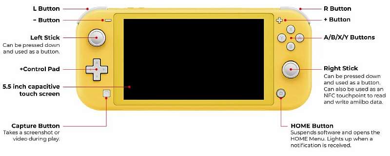 В новинке несъемные контроллеры встроены непосредственно в корпус. Она не поддерживает Labo, лишена инфракрасных сенсоров и виброотдачи HD Rumble. Сигнал с консоли нельзя вывести на ТВ или монитор, девайс предназначен исключительно для игры в портативном режиме.