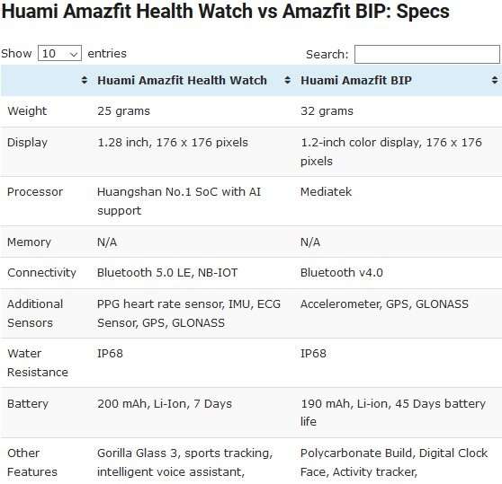 Amazfit Health Watch сохранили форму и экран, как у Bip, но получили металлический корпус и несколько новых расцветок. Базируются часы на процессоре собственной разработки Huami – Huangshan 1, который имеет встроенный движок RealBeats AI. Последний обеспечивает возможность беспрерывного мониторинга пульса и снятия ЭКГ, а также проводит анализ физиологических данных в реальном времени и определяет патологии вроде мерцательной аритмии, фибрилляции предсердий и других болезней. Часы могут самостоятельно отправлять экстренные SMS на заранее заданные номера при определении критического состояния владельца.