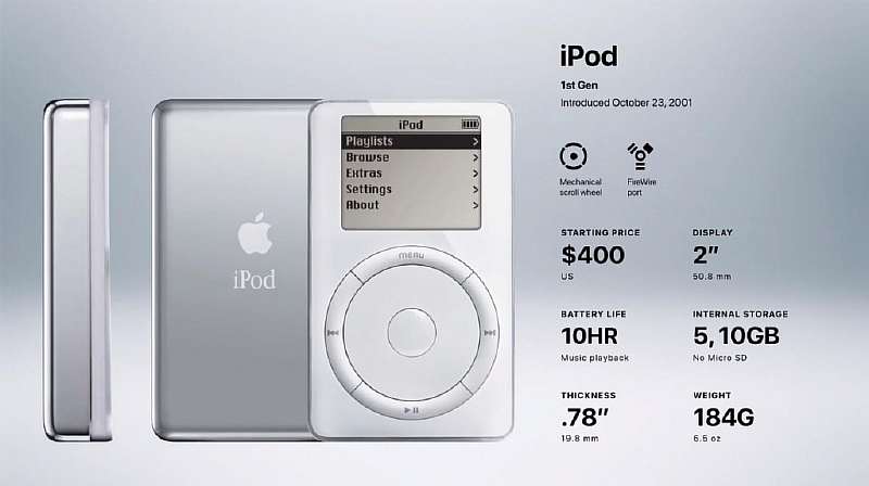 23 октября 2001 года свет увидела первая модель iPod. Как и большая часть продукции Apple того времени, этот MP3-плеер стал маленькой революцией — объем его памяти позволял загрузить до 1000 песен. С тех пор вышло уже 7 поколений iPod, и все идет к тому, что седьмое поколение станет последним.