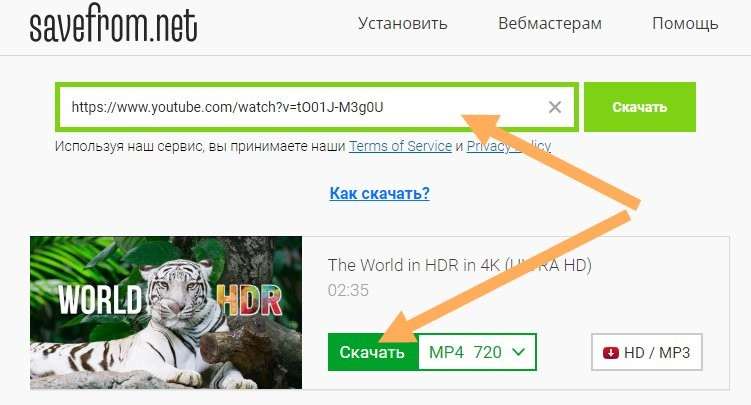 Такая ссылка сразу отправит вас на savefrom.net и вы сможете скачать видео. Еще можно установить разрешение для браузера, с которым даже не придется переходить на сайт savefrom.net.