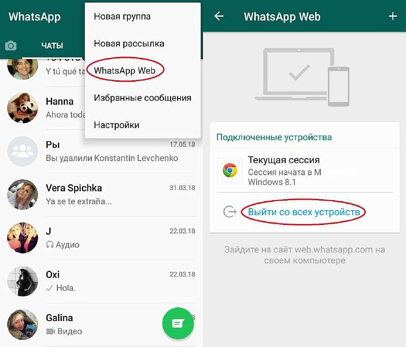 Конечно, точное имя пользователя, который следит за вашими переписками, вы не увидите, зато сможете узнать информацию о его смартфоне или компьютере. В этом же разделе меню, можно прекратить авторизацию на других устройствах, нажав на соответствующую кнопку.