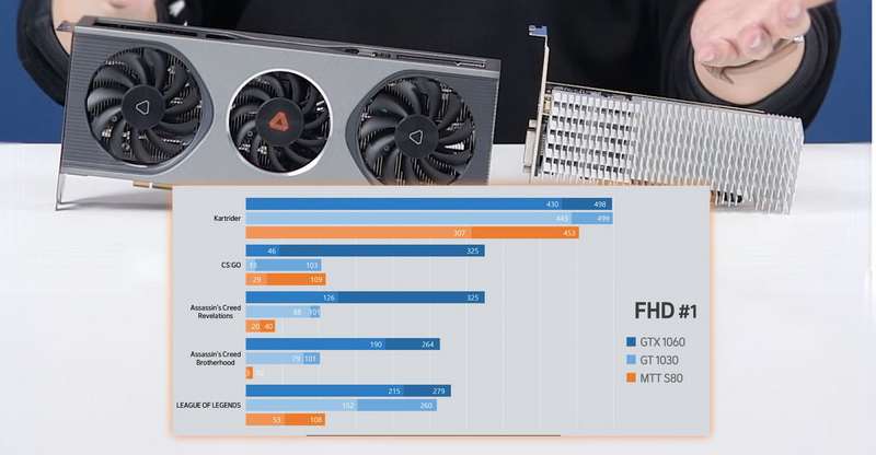 По характеристикам и цене (275$) «китайский ответ NVIDIA и AMD» выглядит довольно интересно, однако первый крупный обзор от китайского ютубера BullsLab Benchmarks показал, что с реальной работоспособностью модели есть большие проблемы. Так, MTT S80 потребляет до 252 Вт (!) мощности, а по производительности в играх и большинстве тестов уступает Nvidia GT 1030 2016 выпуска. При этом модель от Nvidia стоит менее 100$, потребляет всего 30 Вт и имеет пассивную систему охлаждения, что дает понят, насколько китайские производители отстают от лидеров рынка.