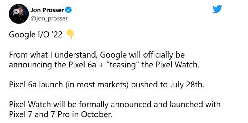 Джон Проссер сообщил, что Pixel 6a представят на конференции I/O, которая пройдет с 11 по 12 мая. Продаваться же смартфон начнет 28 июля. Также инсайдер рассказал, что на мероприятии компания анонсирует умные часы Pixel Watch, которые будут доступны для покупки в октябре. Вместе с новыми флагманами Pixel 7 и Pixel 7 Pro.