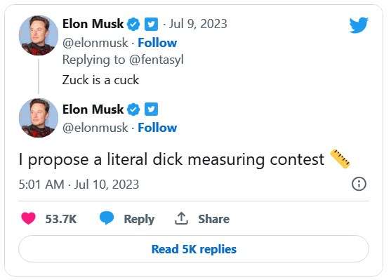 Разогрев перед боем: Маск назвал Цукерберга «куколдом» и предложил померяться половыми органами