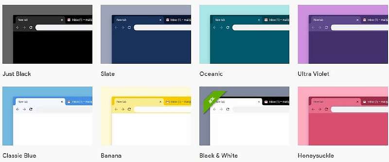 Разработчики Google Chrome представили набор тем, состоящий из 14 вариантов нового цветового оформления браузера. В подборке присутствуют как стильные монохромные решения (Black & White), так и красочные контрастные темы вроде Sea Foam или Serenity.