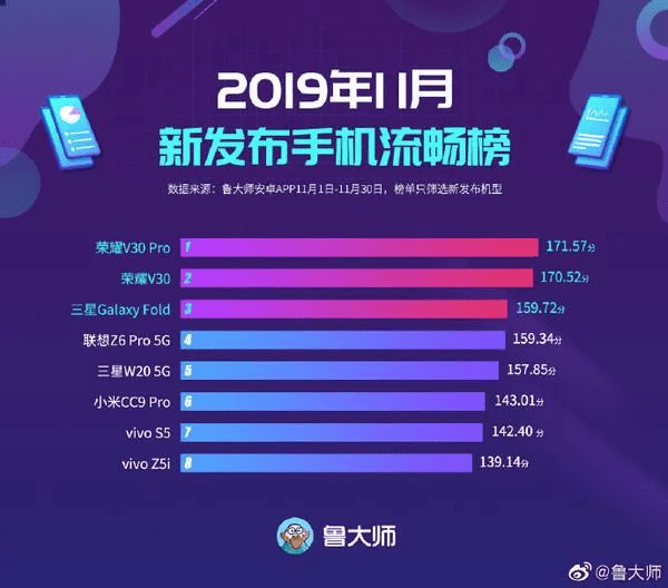 Авторы бенчмарка Master Lu опубликовали ежемесячный рейтинг самых быстрых смартфонов. В тестировании участвовали только модели, вышедшие в продажу в ноябре, а потому в итогах нет ни OnePlus 7T, ни Galaxy Note 10 и других топовых флагманов 2019 года.
