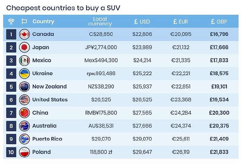 …в Канаде. Уехать из салона за рулем новенького Toyota RAV4 можно всего за 22 800$. На втором месте по дешевизне идет сама Япония, где эта модель стоит на 1100$ дороже. В топе оказалась и Украина: RAV4 тут стоит чуть больше 25 000$.